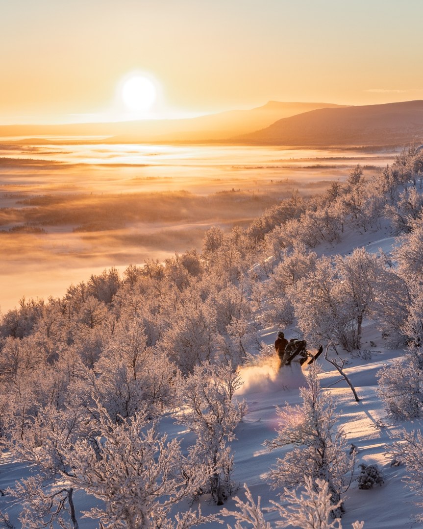 Känn pulsen stiga i Saxnäs fjällvärld. Djup pudersnö, lekfull terräng med perfekta förutsättningar för skoteråkning med maximal adrenalinkick.